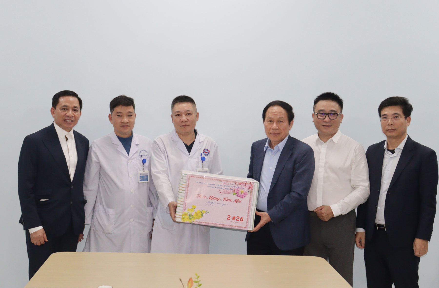 Đến thăm, tặng quà cán bộ, y, bác sĩ tại Bệnh viện Việt Tiệp cơ sở 2, đồng chí Bí thư Thành ủy đã thăm hỏi và tặng quà các cán bộ, y bác sĩ tại ca trực; đồng thời ghi nhận, biểu dương tinh thần trách nhiệm của đội ngũ y tế trong công tác chăm sóc sức khỏe nhân dân, đặc biệt là trong dịp Tết.