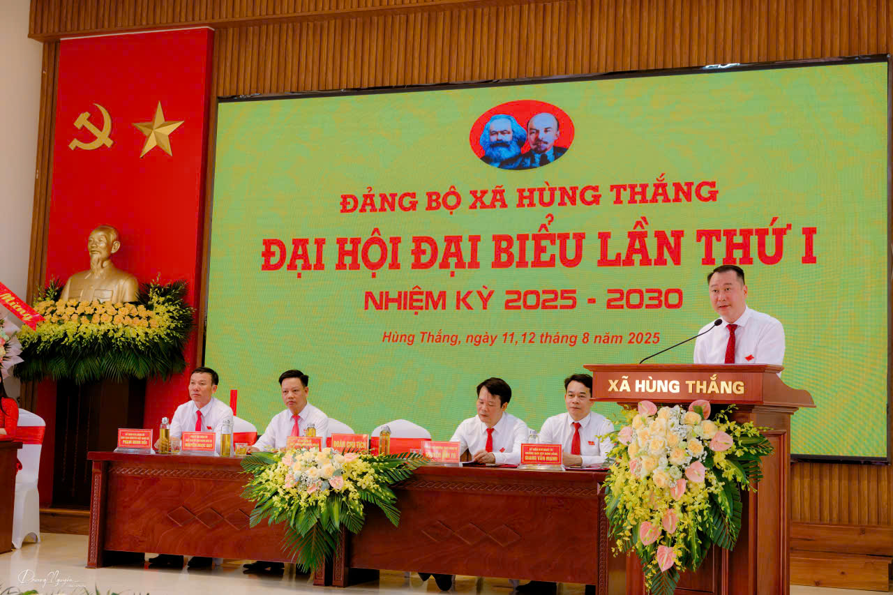 Trong 2 ngày 11 và 12 tháng 8, Đảng bộ xã Hùng Thắng long trọng tổ chức Đại hội đại biểu lần thứ I, nhiệm kỳ 2025 - 2030. Dự Đại hội có các đồng chí: Thiếu tướng Bùi Quang Bình, Ủy viên Ban Thường vụ Thành ủy, Giám đốc Công an thành phố; Nguyễn Hồng Vinh, Phó Trưởng Ban Tổ chức Thành ủy, Tổ phó Tổ công tác số 20 của Ban Thường vụ Thành ủy; các đồng chí thành viên trong Tổ công tác số 20 của Ban Thường vụ Thành ủy; đại diện các ban xây dựng Đảng, Văn phòng Thành ủy; đại diện lãnh đạo Đồn Biên phòng Vinh Quang; đại biểu đại diện các cơ quan, đơn vị, doanh nghiệp trên địa bàn; cùng 214 đại biểu chính thức đại diện cho 975 đảng viên trong Đảng bộ.