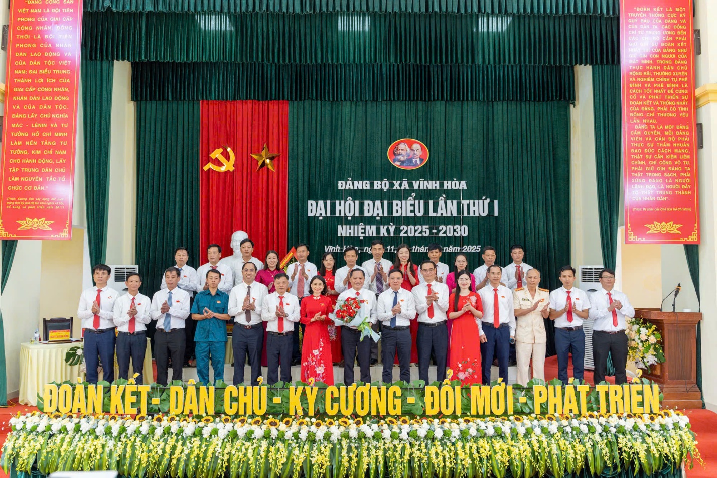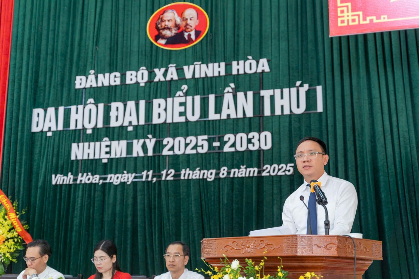 Sáng ngày 12/8/2025, Đảng bộ xã Vĩnh Hòa long trọng tổ chức phiên chính thức Đại hội đại biểu lần thứ I, nhiệm kỳ 2025-2030. Đồng chí Đào Trọng Đức, Ủy viên Ban Thường vụ Thành ủy, Chánh Văn phòng Thành ủy, phụ trách Đảng bộ xã, Tổ trưởng Tổ công tác số 6 của Ban Thường vụ Thành ủy dự và chỉ đạo Đại hội. Đại hội có sự tham dự của 173 đại biểu tiêu biểu, đại diện cho 1.019 đảng viên thuộc 44 chi bộ trực thuộc Đảng bộ xã.