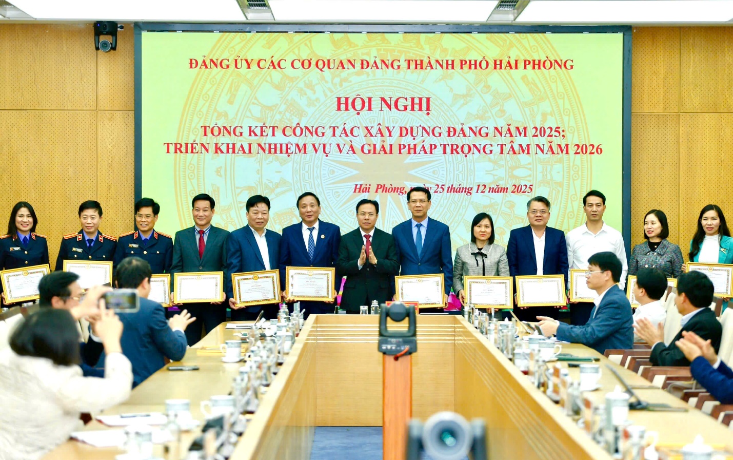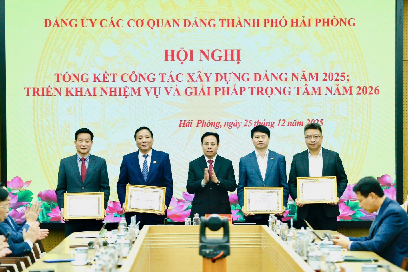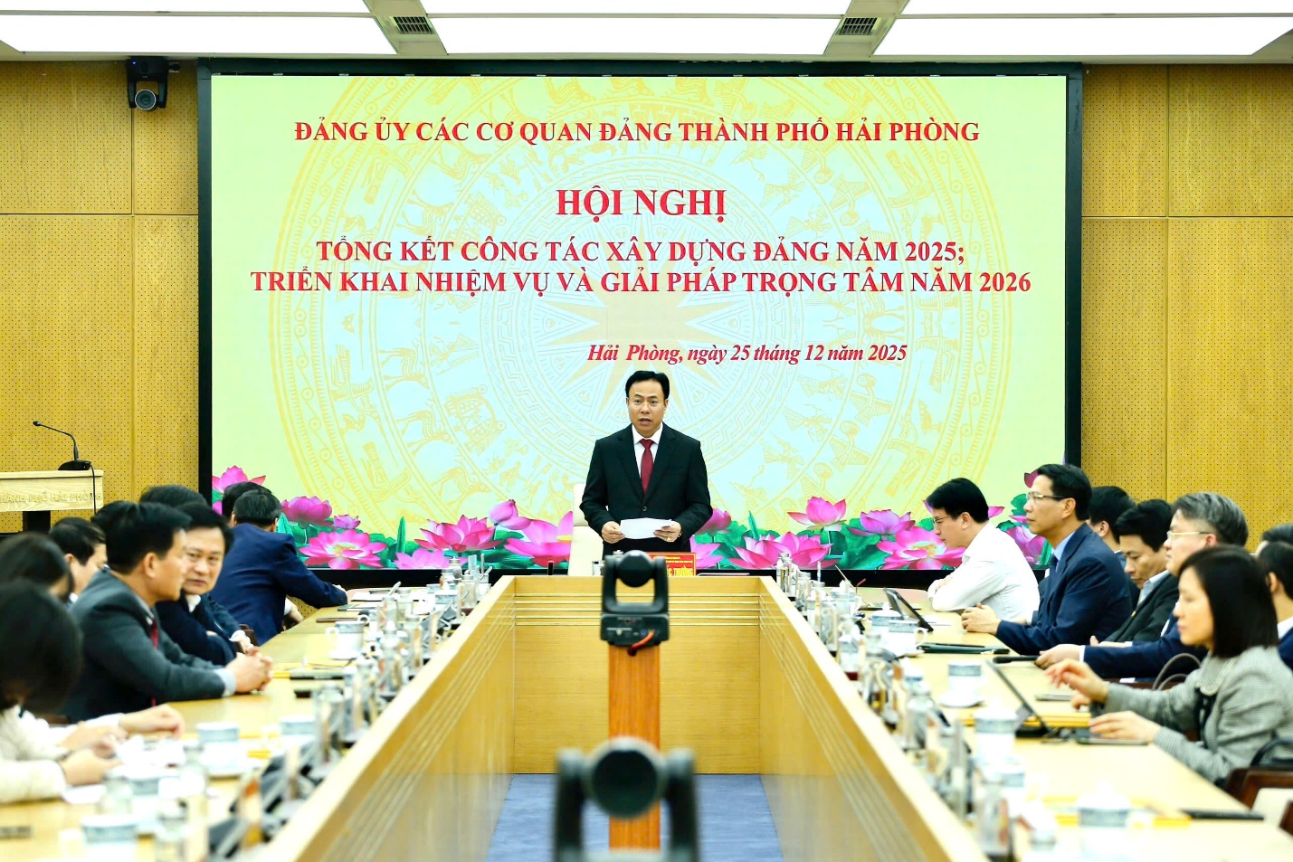 Chiều ngày 25/12/2025, Đảng ủy Các cơ quan Đảng thành phố tổ chức Hội nghị tổng kết công tác năm 2025, triển khai nhiệm vụ trọng tâm năm 2026. Đồng chí Hoàng Quốc Thưởng, Ủy viên Ban Thường vụ Thành ủy, Phó Bí thư Thường trực Đảng ủy Các cơ quan Đảng thành phố chủ trì Hội nghị. Cùng dự có các đồng chí: Nguyễn Đức Tuấn, Ủy viên Ban Thường vụ Thành ủy, Phó Chủ tịch Thường trực Ủy ban Mặt trận Tổ quốc Việt Nam thành phố; Nguyễn Văn Phú, Ủy viên Ban Thường vụ Thành ủy, Hiệu trưởng Trường Chính trị Tô Hiệu; Bùi Đức Quang, Phó Chủ tịch Hội đồng nhân dân thành phố; Nguyễn Khắc Toản, Phó Chủ tịch Hội đồng nhân dân thành phố.