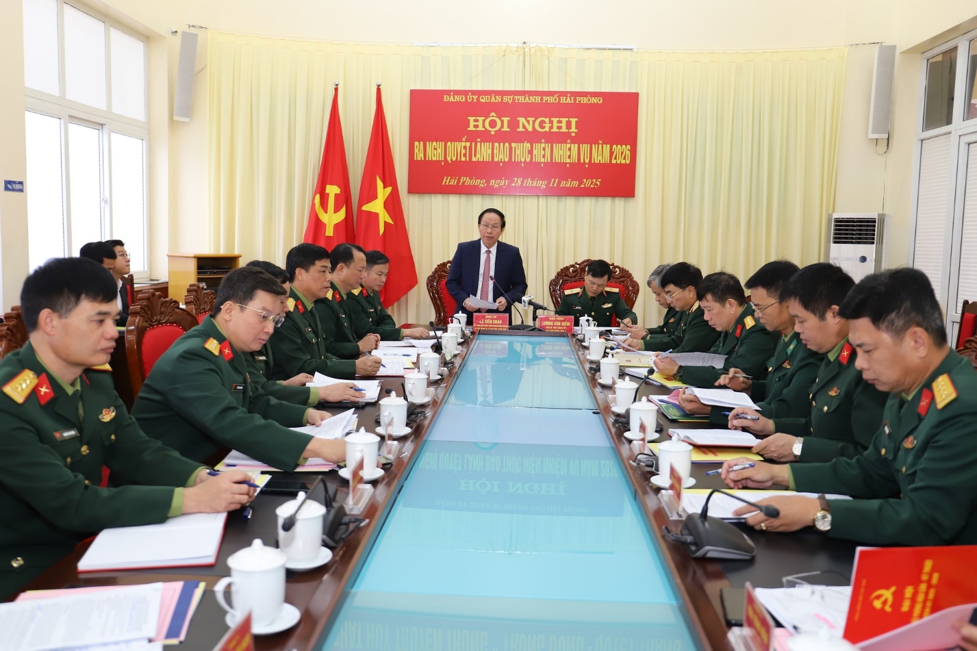 Sáng 28/11, Đảng ủy Quân sự thành phố Hải Phòng tổ chức hội nghị ra nghị quyết lãnh đạo thực hiện nhiệm vụ năm 2026. Đồng chí Lê Tiến Châu, Ủy viên Trung ương Đảng, Bí thư Thành ủy, Trưởng Đoàn đại biểu Quốc hội thành phố, Bí thư Đảng ủy Quân sự thành phố chủ trì hội nghị. Thiếu tướng Lương Văn Kiểm, Phó bí thư Đảng ủy, Tư lệnh Quân khu 3 dự và chỉ đạo hội nghị.