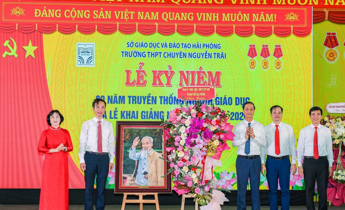 Đồng chí Phó Bí thư Thường trực Thành ủy Đỗ Mạnh Hiến dự lễ khai giảng tại Trường THPT chuyên Nguyễn Trãi