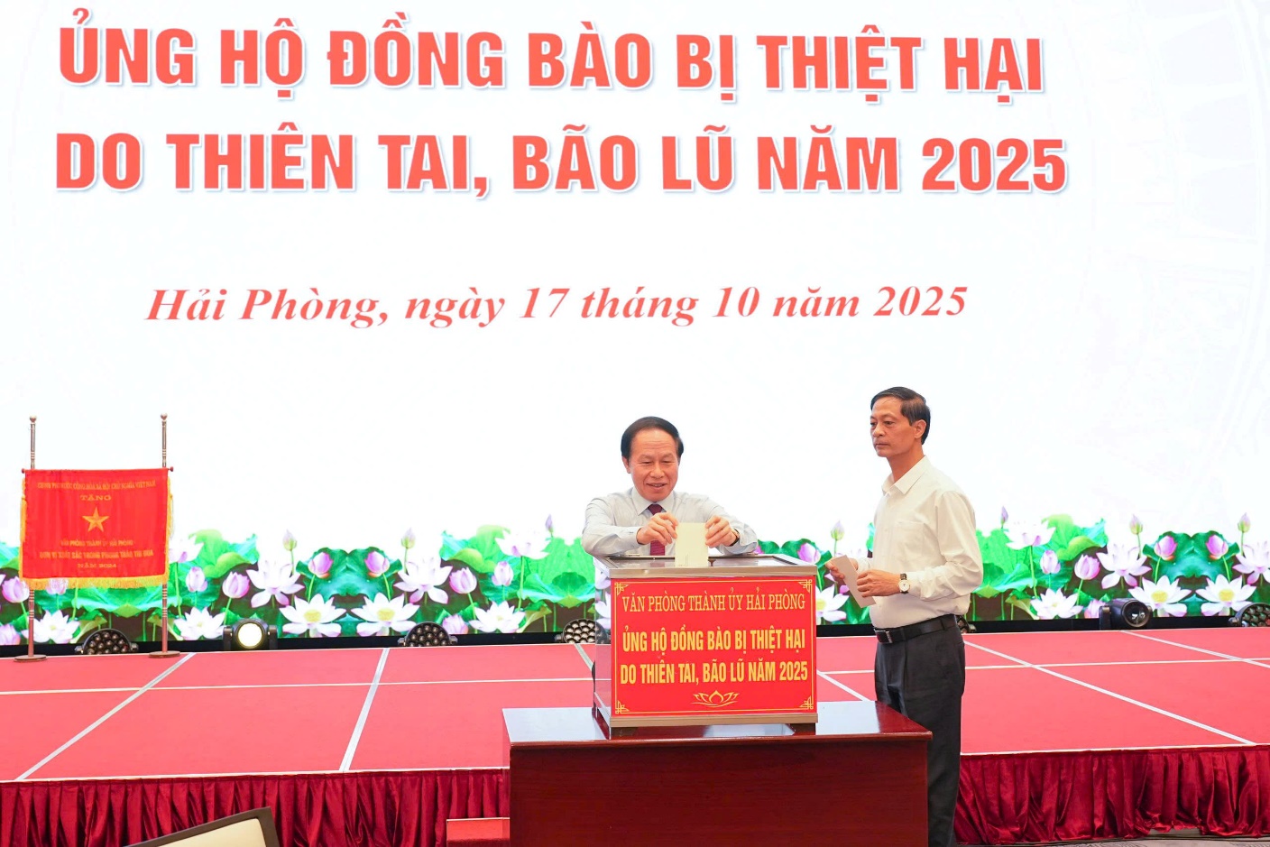 Các đồng chí lãnh đạo thành phố ủng hộ đồng bào bị thiệt hại do thiên tai, bão lũ năm 2025