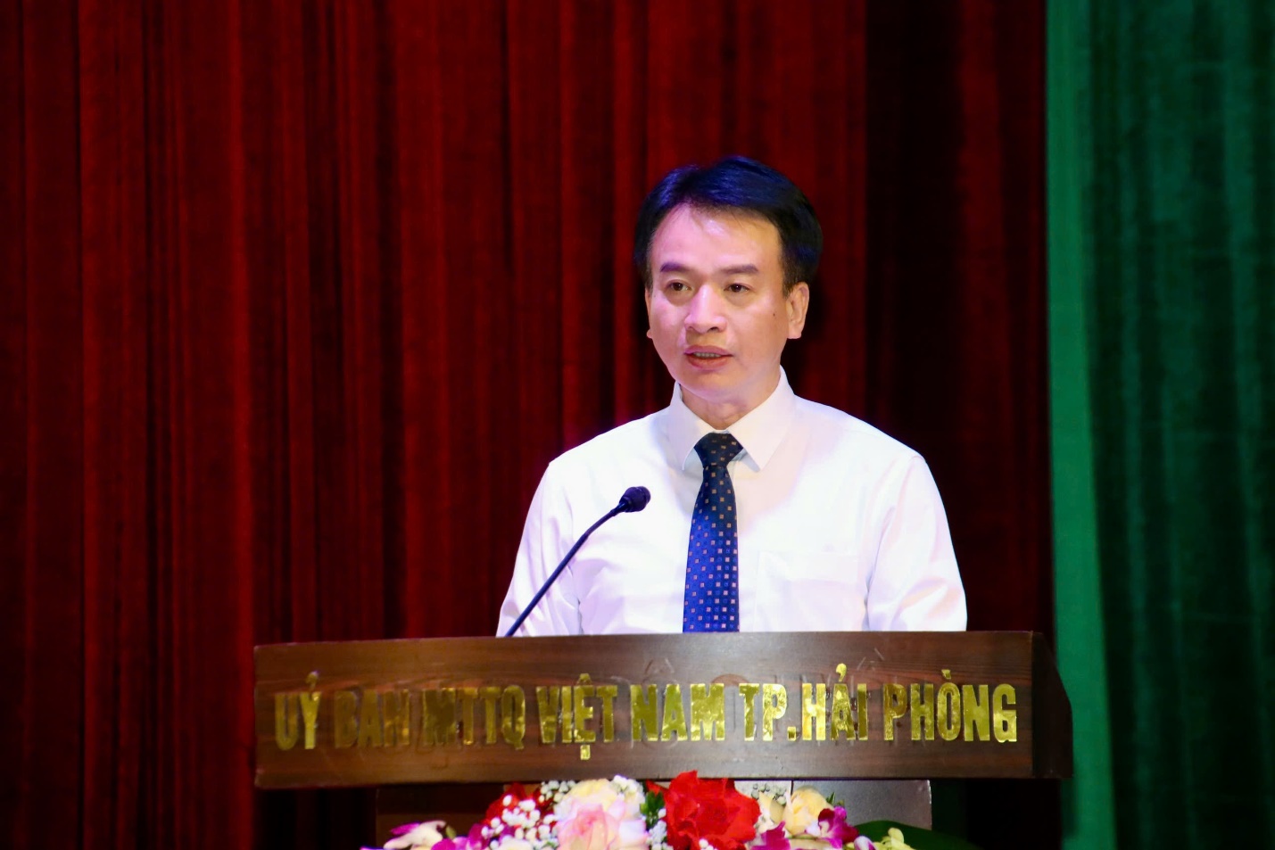 Phát biểu khai mạc, đồng chí Nguyễn Đức Tuấn, Phó Chủ tịch Uỷ ban Mặt trận Tổ quốc Việt Nam thành phố nhấn mạnh: trong 5 năm qua, dưới sự lãnh đạo của Thành ủy và sự hướng dẫn của Ủy ban Trung ương Mặt trận Tổ quốc Việt Nam, Mặt trận Tổ quốc và các tổ chức chính trị - xã hội thành phố đã phát động nhiều phong trào thi đua thiết thực, sáng tạo, bám sát nhiệm vụ chính trị của địa phương. Nhiều phong trào đã để lại dấu ấn rõ nét như: “Toàn dân đoàn kết xây dựng nông thôn mới, đô thị văn minh”, “Vì người nghèo - Không để ai bị bỏ lại phía sau”, “Xóa nhà tạm, nhà dột nát”, “Đoàn kết sáng tạo”, “Phụ nữ tích cực học tập, lao động sáng tạo, xây dựng gia đình hạnh phúc”, “Nông dân sản xuất kinh doanh giỏi”, “Cựu chiến binh gương mẫu”, “Tuổi trẻ sáng tạo”… Các hoạt động đã huy động sự hưởng ứng tích cực của đoàn viên, hội viên và các tầng lớp nhân dân, góp phần xây dựng Hải Phòng ngày càng giàu đẹp, văn minh, hiện đại.