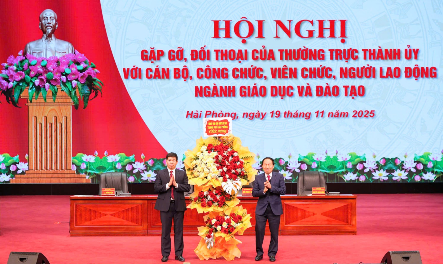 Trong không khí phấn khởi nhân dịp kỷ niệm 43 năm Ngày Nhà giáo Việt Nam (20/11/1982-20/11/2025), sáng ngày 19/11/2025, Ban Thường vụ Thành uỷ Hải Phòng tổ chức Hội nghị gặp gỡ, đối thoại của Thường trực Thành ủy với hơn 800 cán bộ, công chức, viên chức, người lao động ngành Giáo dục và Đào tạo thành phố. Đồng chí Lê Tiến Châu, Uỷ viên Ban Chấp hành Trung ương Đảng, Bí thư Thành uỷ, Trưởng đoàn Đoàn đại biểu Quốc hội thành phố chủ trì hội nghị.