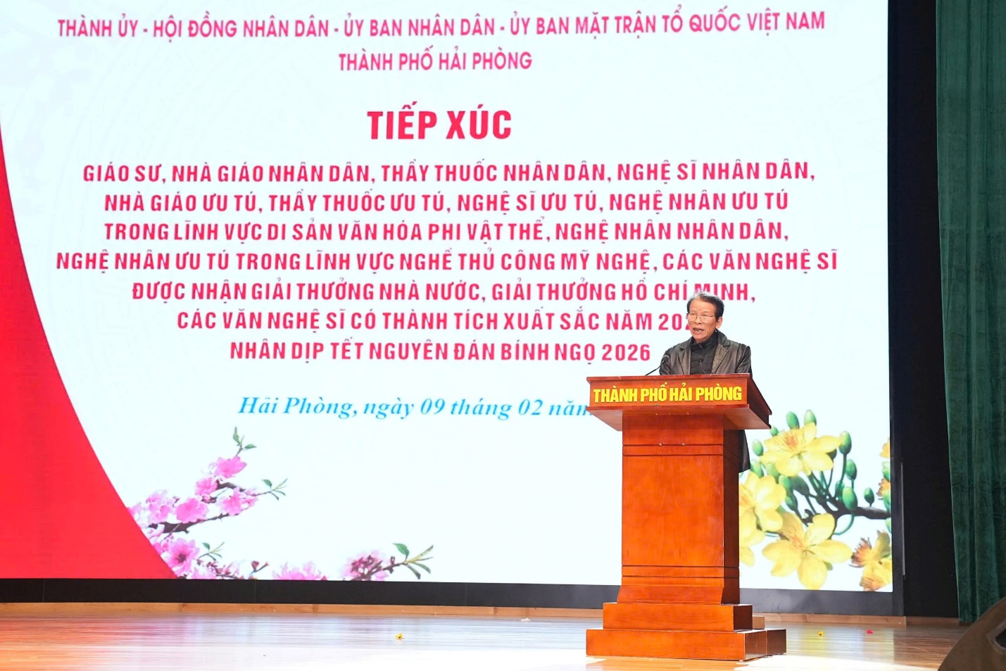 Chiều ngày 09/02/2026, tại Trung tâm Hội nghị - Biểu diễn thành phố, Thành ủy - HĐND - UBND - Ủy ban MTTQ Việt Nam thành phố tổ chức tiếp xúc Giáo sư, Nhà giáo Nhân dân, Thầy thuốc Nhân dân, Nghệ sĩ Nhân dân, Nhà giáo Ưu tú, Thầy thuốc Ưu tú, Nghệ sĩ Ưu tú, Nghệ nhân Ưu tú trong lĩnh vực di sản văn hóa phi vật thể, Nghệ nhân Nhân dân, Nghệ nhân Ưu tú trong lĩnh vực nghề thủ công mỹ nghệ, các văn nghệ sĩ được nhận Giải thưởng Nhà nước, Giải thưởng Hồ Chí Minh và các văn nghệ sĩ có thành tích xuất sắc năm 2025 nhân dịp tết Nguyên đán Bính Ngọ 2026.